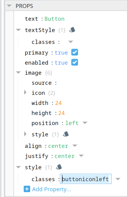 Could you please advise how I can create another “buttoniconleft“ advanced style class instead of the default one?
