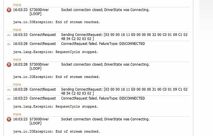 What’s happening is that the PLC is closing the connection after receiving the connect request from Ignition’s Siemens driver. There’s no indication why, but generally it indicates that it doesn’t like something about it, which is why my first guess was the rack or slot number being incorrect.