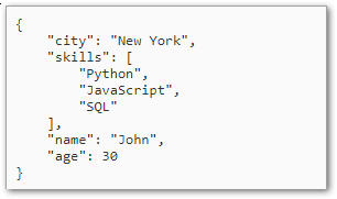 value: {"name":"John","age":30,"city":"New York","skills":["Python","JavaScript","SQL"]}