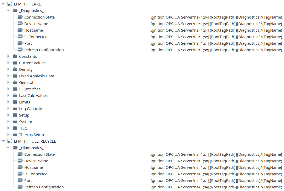 Below, Fuel_Recycle is the first UDT and working. The Flare UDT, I copied the tag path and pasted it in as a group. This is to show they match. I could not figure out to not have to type [Diagnostics] or Constants. If you can help with that also….hehehe