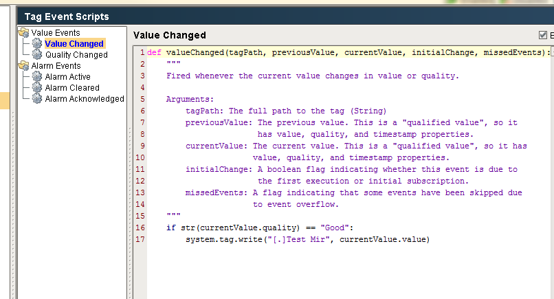 Slightly related: when checking the quality of a tag, you can simply use: currentValue.quality.isGood() which returns either True or False. Not sure if that’s available in 7.7.4, though I’d assume so.